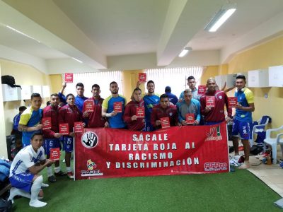 Integrantes del equipo de Wilsterman apoyando la canpaña Sácale Tarjeta Roja al Racismo y Discriminación organizada por nuestro gremio.