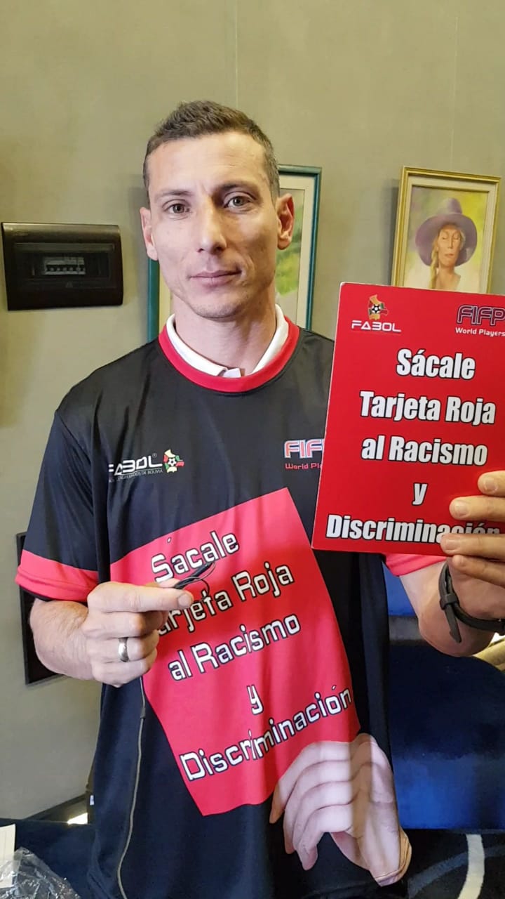 El capitán de Strongest Pablo Escobar con la campaña contra el racismo y la discriminación