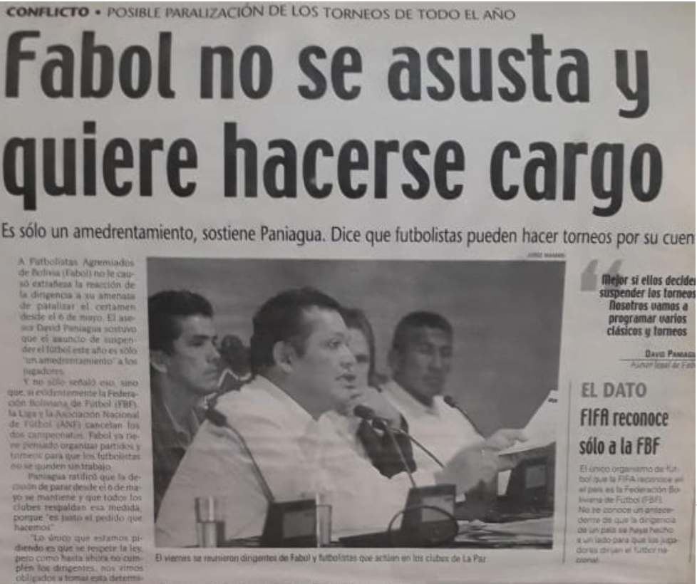La historia del Movimiento Gremial y/ó Sindical de los Futbolistas Profesionales de Bolivia, se remonta al año 1.984, donde por primera vez se da a conocer desde que se fundó la Liga del Fútbol Profesional en el año 1.977.
