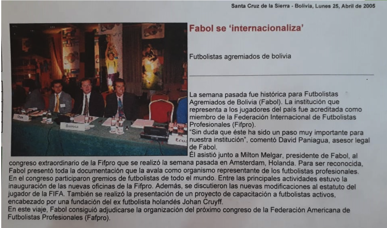FABOL – Participación en calidad de miembro de la FIFPro World.