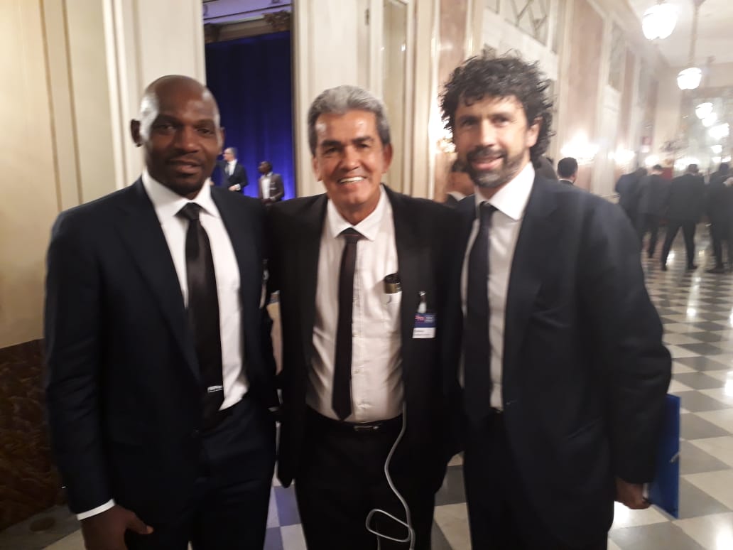 Invitados de honor a los 50 años de la fundación del gremio Italiano de futbolistas.