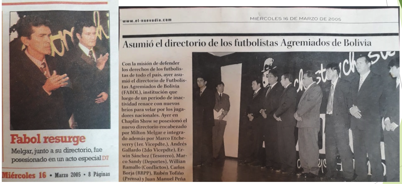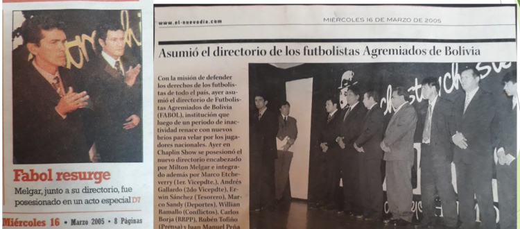 Con la misionde defender los derechos de los futbolistas de todo el pais. Ayer se asumió al directorio de Futbolistas Agremiados de Bolivia (FABOL).