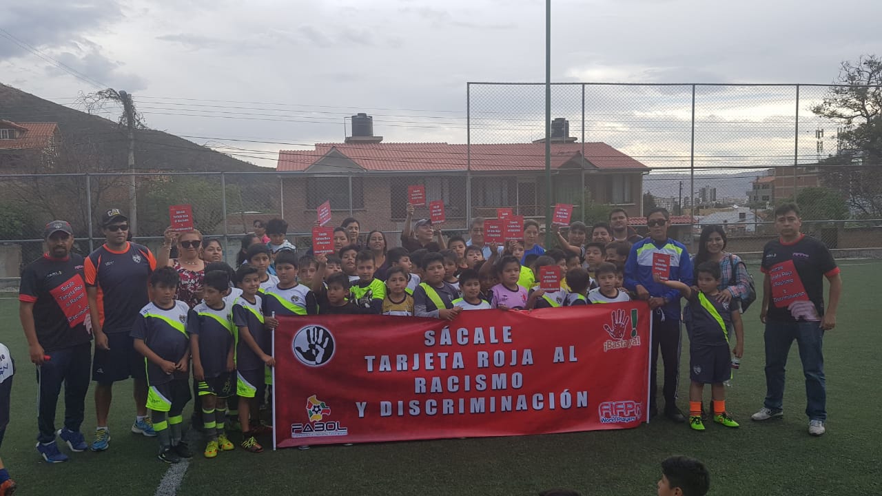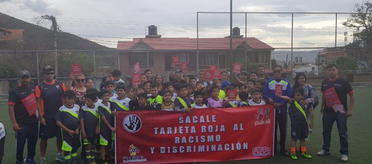 La Escuela de Fútbol FUTVALLE a la cabeza del Prof. Wilder Arévalo exfutbolista profesional de gran trayectoria, junto a los entrenadores, futbolistas y padres de familia, se unieron a la campaña de FABOL y FIFPro «SÁCALE TARJETA ROJA AL RACISMO Y DISCRIMINACIÓN».
