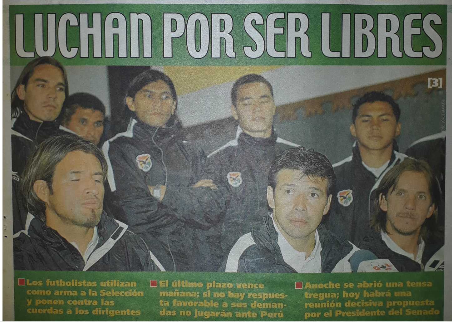 Los futbolistas utilizan como arma a la seleccion y ponen contra las cuerdas a los dirigentes. El ultimo plazo vence mañana, si no hay respuesta favorable a sus demandas no jugarán ante peru. Anoche se abrio una tensa tregua; hoy habrá una deciscion decisiva propuesta por el presidente del senado.