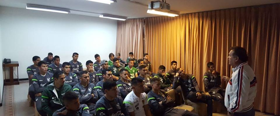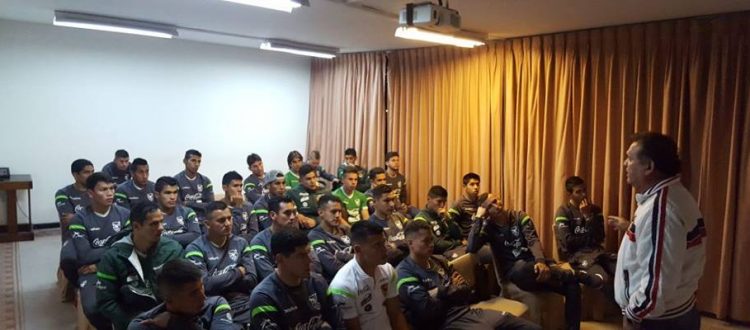 La Federación Sindical de Futbolistas Profesionales de Bolivia – FABOL, representada por el Secretario General, Dr. David Paniagua, acompañado por el asesor jurídico Dr Luis Fernando Caballero , se reunió con la Selección Nacional Absoluta, para manifestarles todas las mejores vibras, en ocasión de llevarse a cabo el partido Bolivia / Chile, en las eliminatorias Rusia – 2018.
